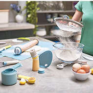 Silicone bowl scraper with integrated foot rest.